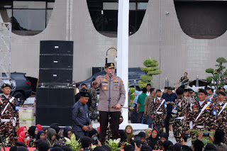 Kapolda Riau Irjen Iqbal menyampaikan orasi kebangsaan dihadapan para peserta apel.